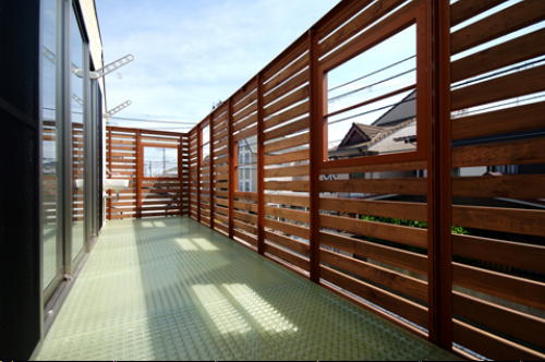 広いテラスは 木製のルーバーで 外部からの視線から守られています。 |