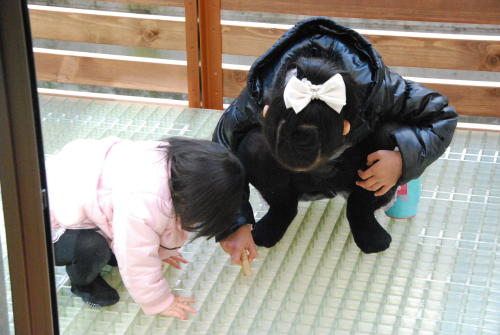 テラスの床は FRPグレーチングなので 下が透けて見えます。 子供たちも興味津々。 |