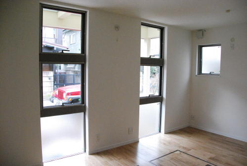 寝室には 床から天井までの 3連の窓をつけました。 |