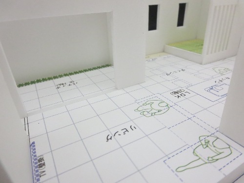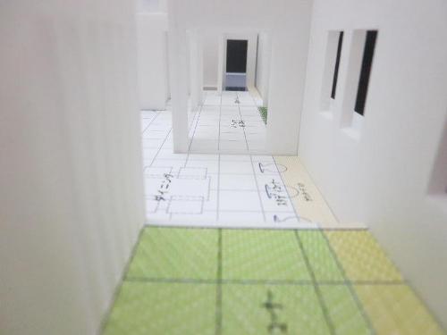 畳コーナーから パティオ越しに 玄関ホールまで 見通すことができます |